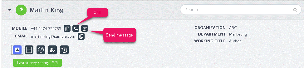 Agents can also choose to make calls to the available number in the contact card by clicking on the click to call icon.