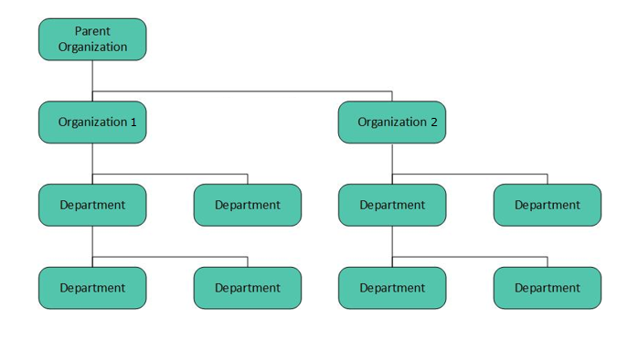 The catalog is built up with a hierarchy system of organisational units. There are 3 basic levels within the hierarchy: Parent organisation, Organisation and Department.