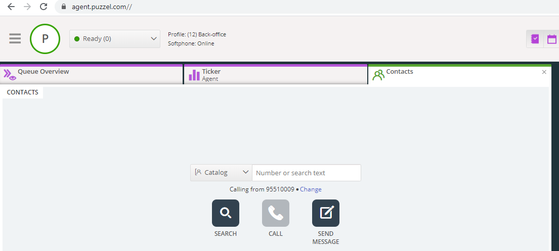 The contacts in the Catalog are searchable in the Agent application's Contacts tab: