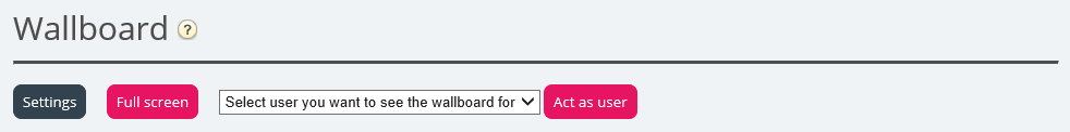 A user can deploy Wallboard settings on behalf of other users in the Wallboard area, if the Administration property Act as another user (wallboard) is turned on. If you have such access, choose the relevant (Wallboard) user you want to configure a Wallboard for (e.g. Wallboard support), click Act as user, and then click Settings to configure this user's Wallboard.
