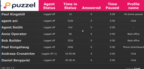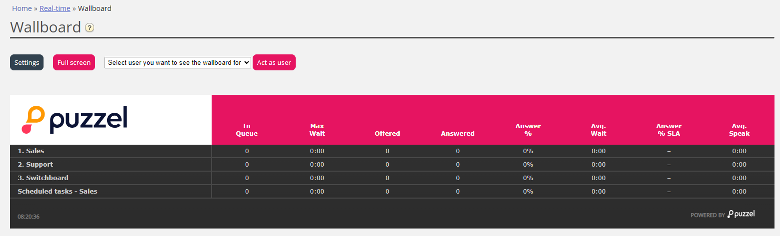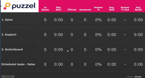 Wallboards are used to show information per display queue and/or agent information on a big screen, so that everyone in a room can have a clear overview. The information in a wallboard is as default updated every 10th second.