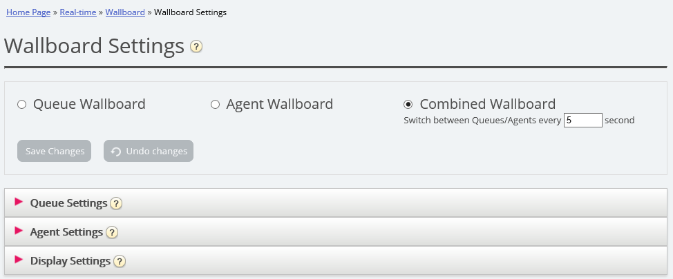 In the upper part, you choose between Queue Wallboard, Agent Wallboard and Combined Wallboard