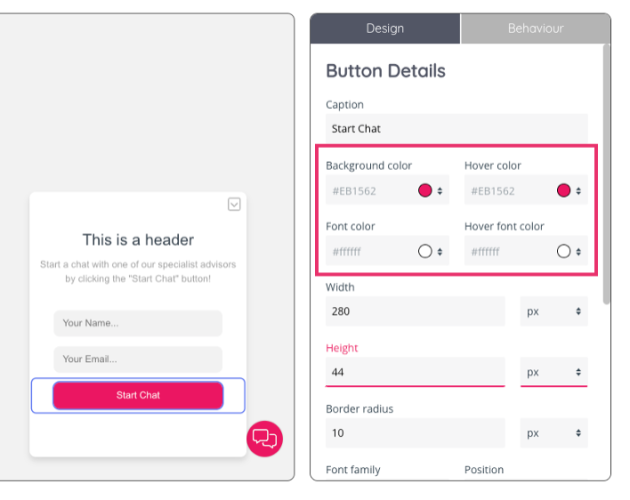 When editing the button’s design there will also be options to edit the: