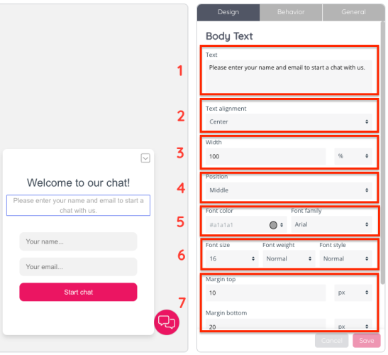 1. There is a section to edit the text of the text box. In the example of input fields, there is a placeholder text which you can edit (i.e.: “Your name…” or “Your email…”)