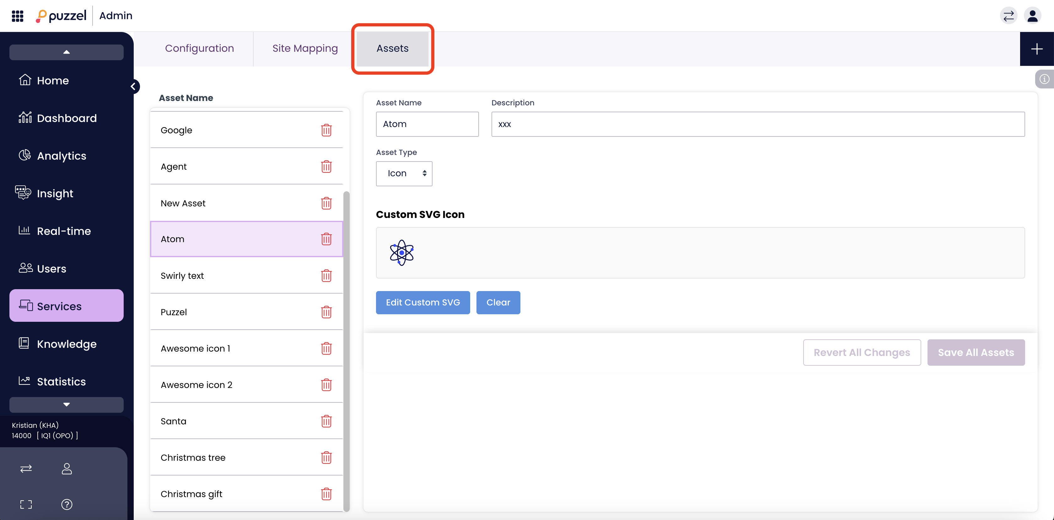 - Edit: Click on any name in the Asset List on the left to load its details. You can rename it, change the description, or swap the icon source at any time.