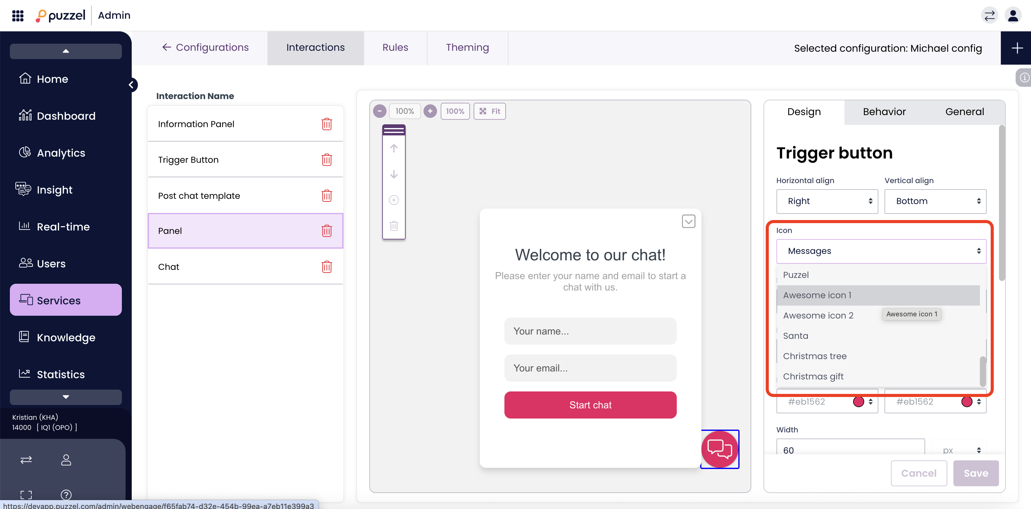 - Select the asset to apply it to the chat widget immediately.