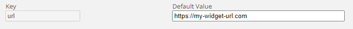 - Key this is the string value, associated with a key for this widget. There are no restrictions on what one can enter, with the main goal being of making this a meaningful key