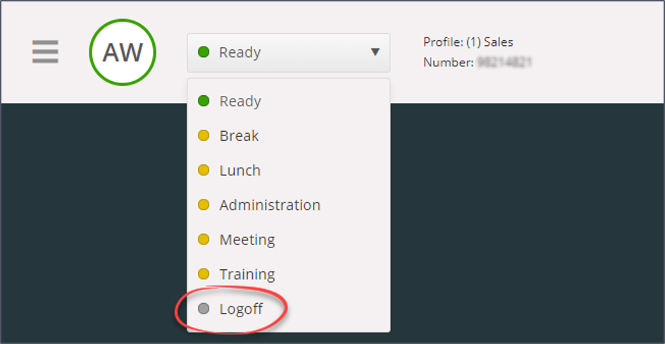 - You are logged off/on/in pause (current status is read out to you)