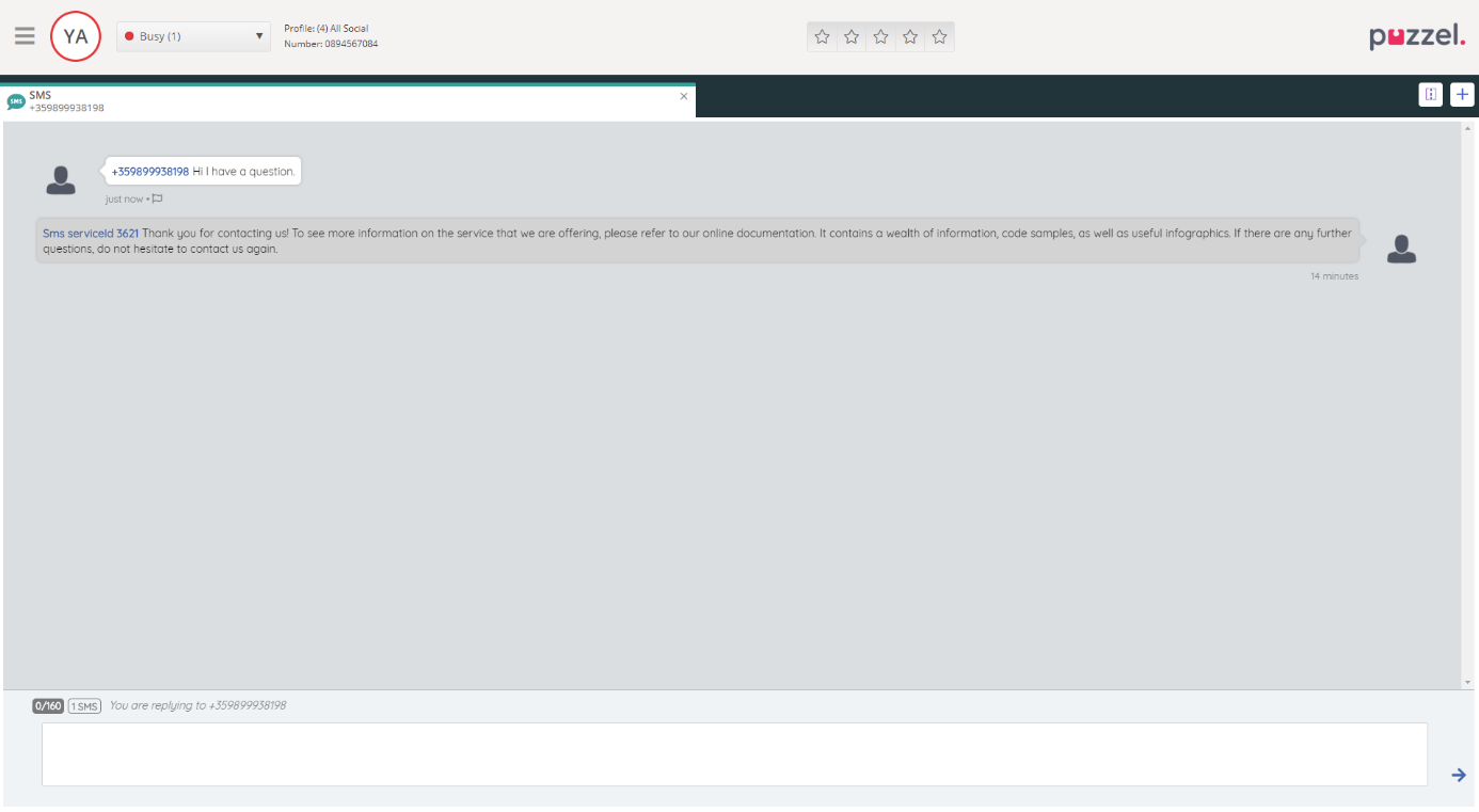 The SMS Channel is not much different from all other sources. Whenever an agent is logged into the Agent Application, they receive a standard request, which looks like this:
