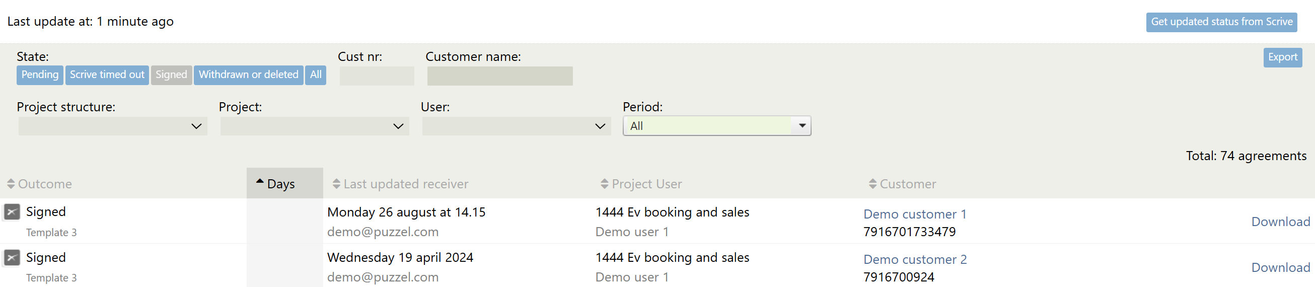 • Available features, such as delete or remind, depend on the current state of each Scrive document.