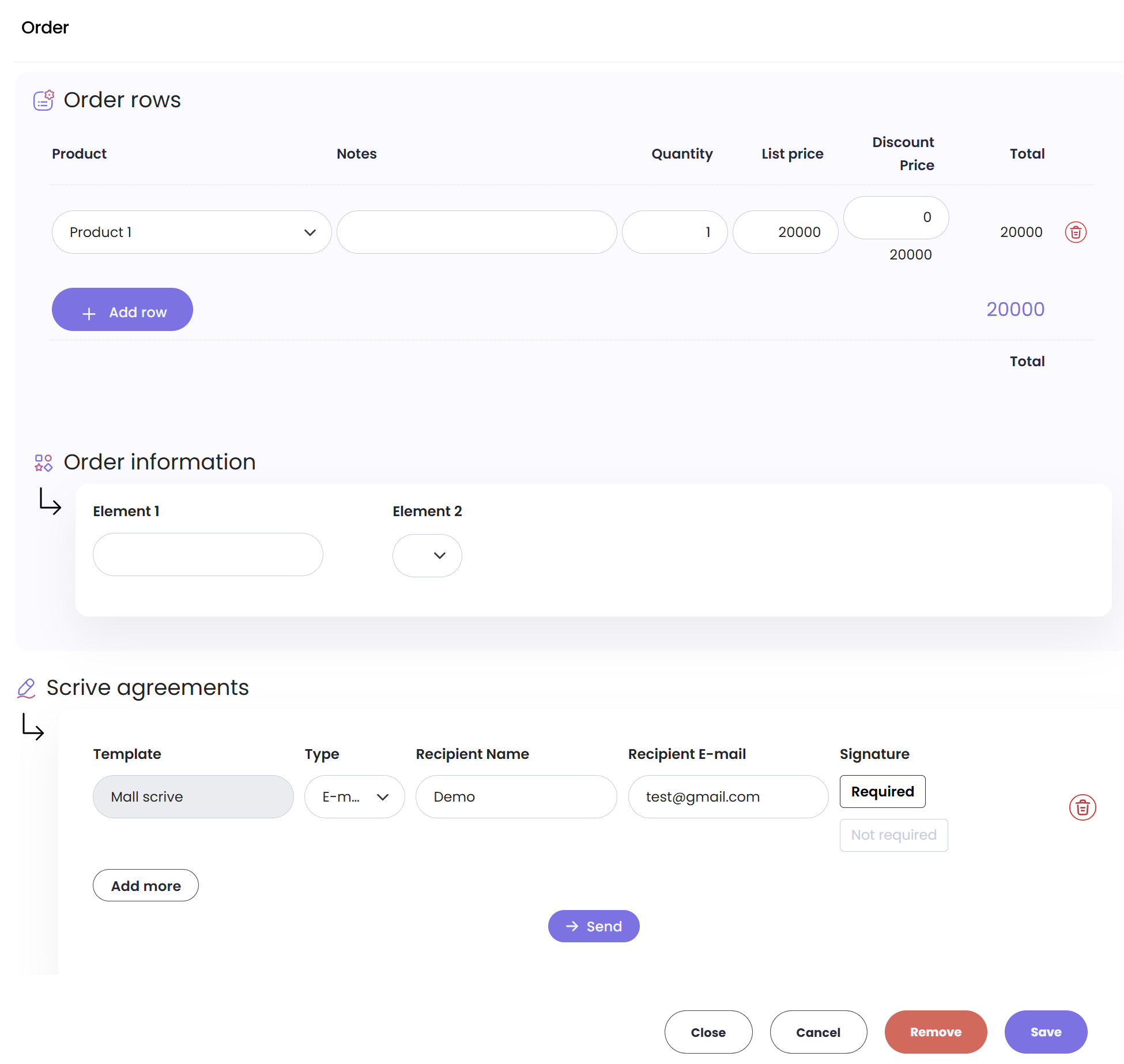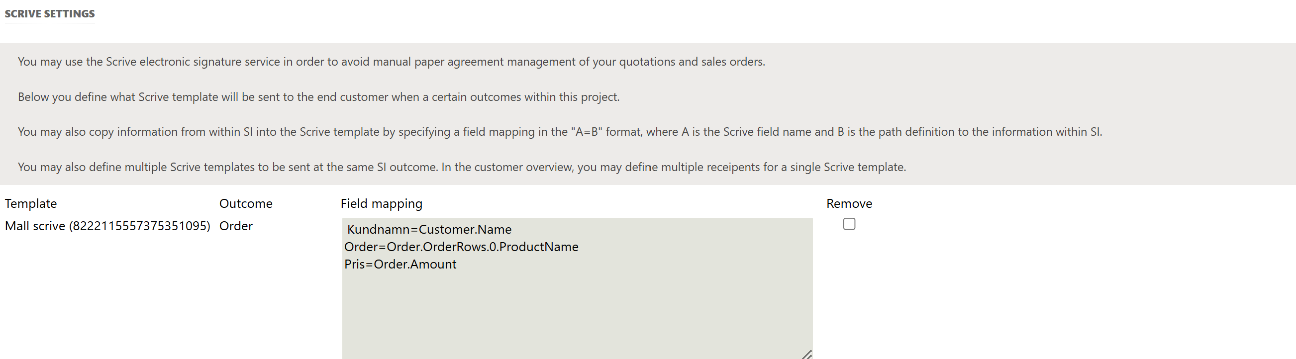 • Fields in the Scrive template can be linked to corresponding fields in PSI.