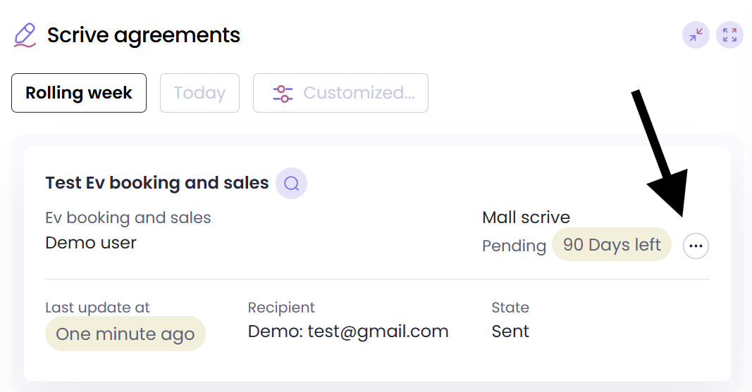 • Click the ... button to access features such as sending reminders or deleting agreements."