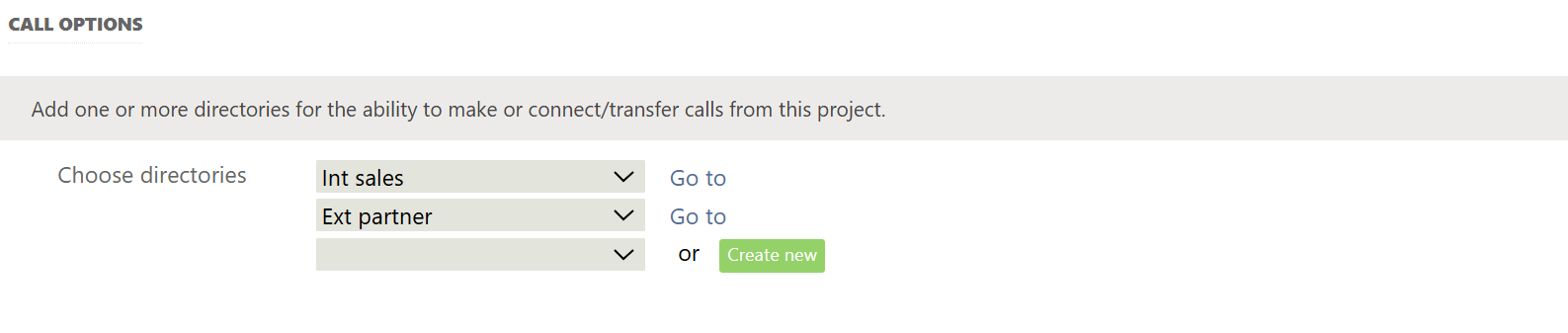 - Directories are added to a project in the bottom part of the project dialer configuration tool.