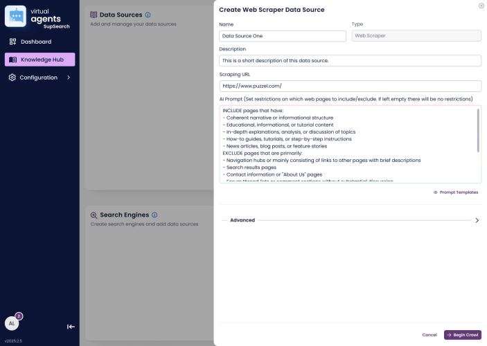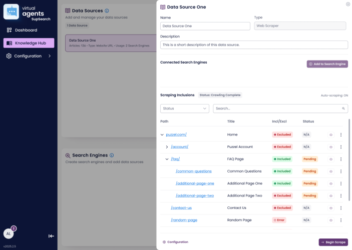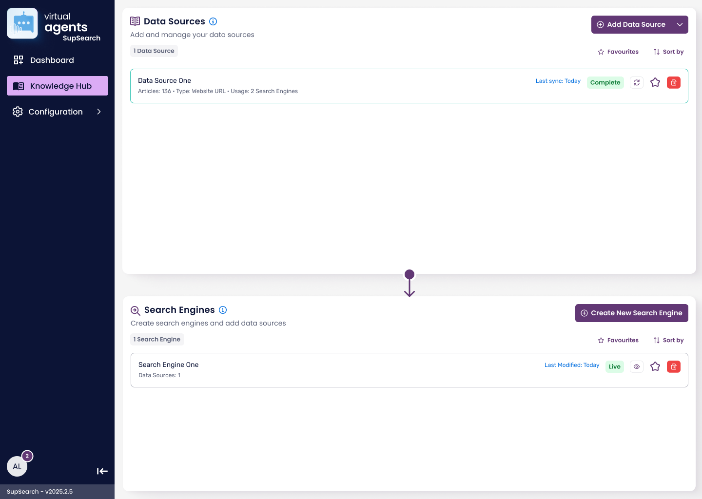 Supsearch has been redesigned with a streamlined UI that makes it easier to configure data sources, extract articles, and connect them to AI search engines. This new experience reduces complexity, improves navigation, and ensures faster training times — directly improving knowledge retrieval for both Virtual Agents and Co-Pilot.