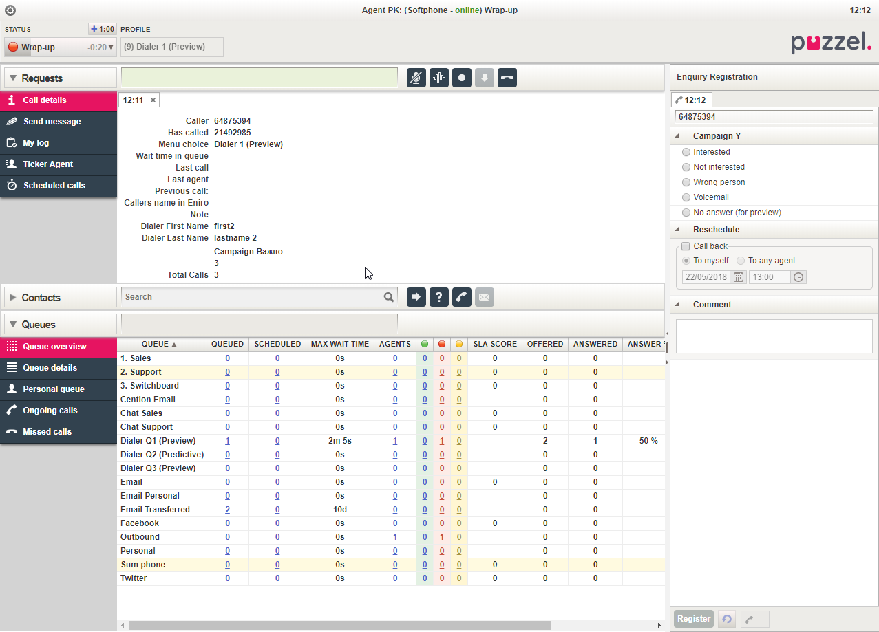 Please note that a rescheduled call without a reserved agent (“to any agent”) will only happen at the scheduled time if the relevant campaign is active and at least one agent is logged on.