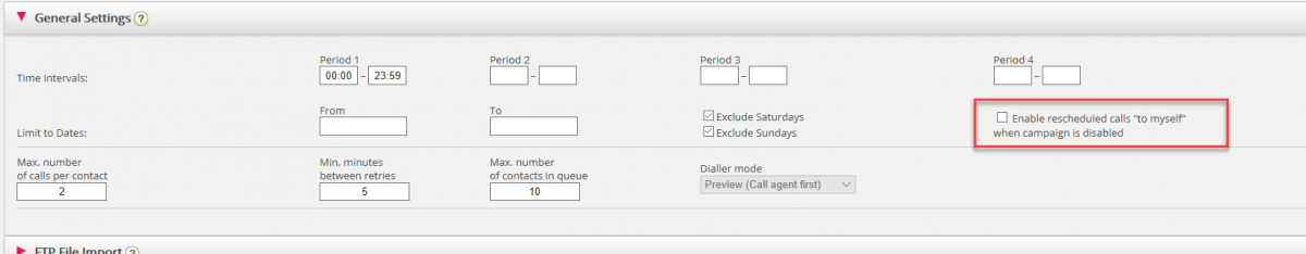 From now on, you can configure (per campaign) that rescheduled calls “to myself” should happen at the rescheduled time even if the campaign is disabled at the reschedule time. Under General settings a new checkbox can be checked if you want this to happen.