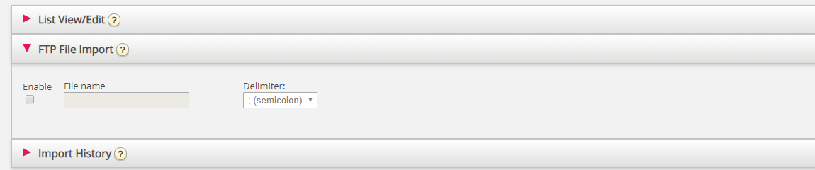 If you already deliver a file/list to Puzzel’s FTP server e.g. weekly, the list’s File name will appear under accordion FTP File import for the relevant list shortly after the release date.