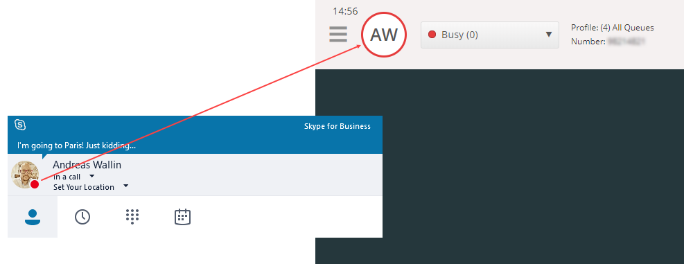 When enabled, we will set the agent-status to “Busy” when you are S4B call. This will avoid that you are offered calls from the queues, while you are in a call not offered by the agent application, like a private conversation.
