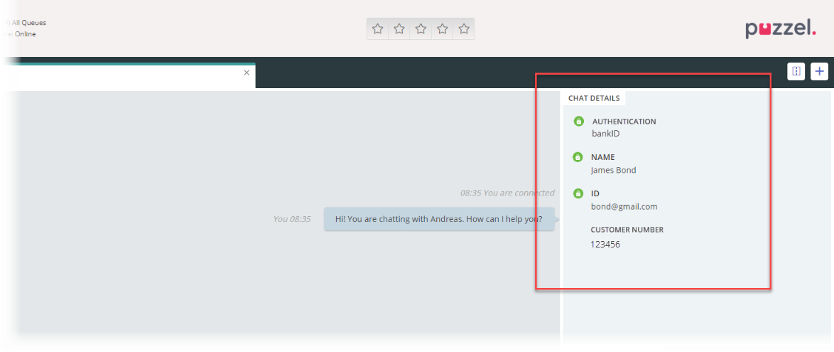 Chat solutions with authenticated variables (like name and e-mail addresses) are now shown with a lock-icon, so that it’s easier for agents to know the if a chat customer is who he/she claims to be, and if they are authenticated or not.