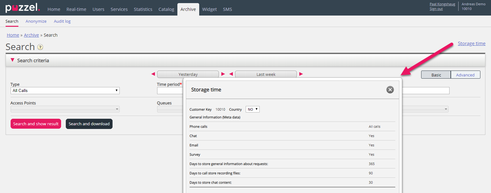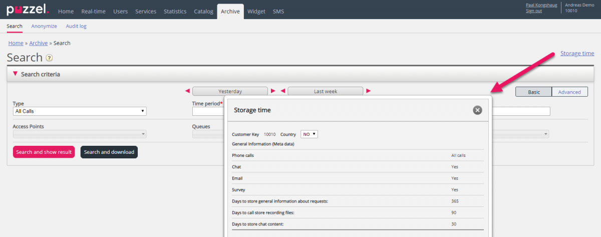 Please contact Puzzel if you want to change the storage time for call recordings.