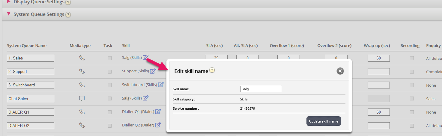 If you have a skill name that needs to be changed, this can now be done under System Queue Settings, by users with access to edit system queue settings.