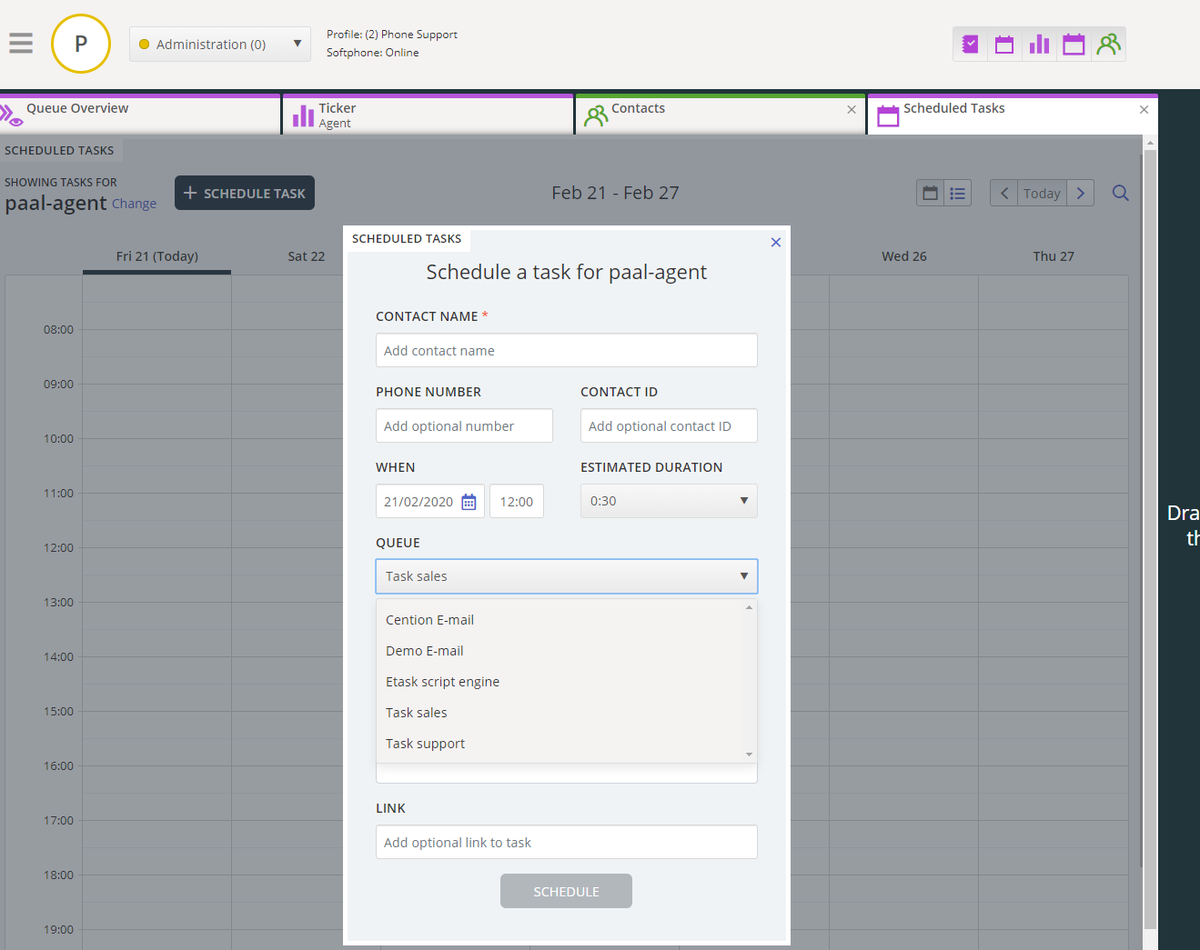 - A new email queue for Scheduled task will be available for agents to put new scheduled tasks in.
