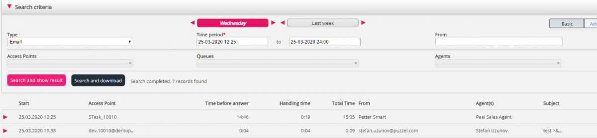 For requests with type = Email we now show the agent’s name in the Agent column in the result table. Until now, it has only been shown in the conversation event in the chart.