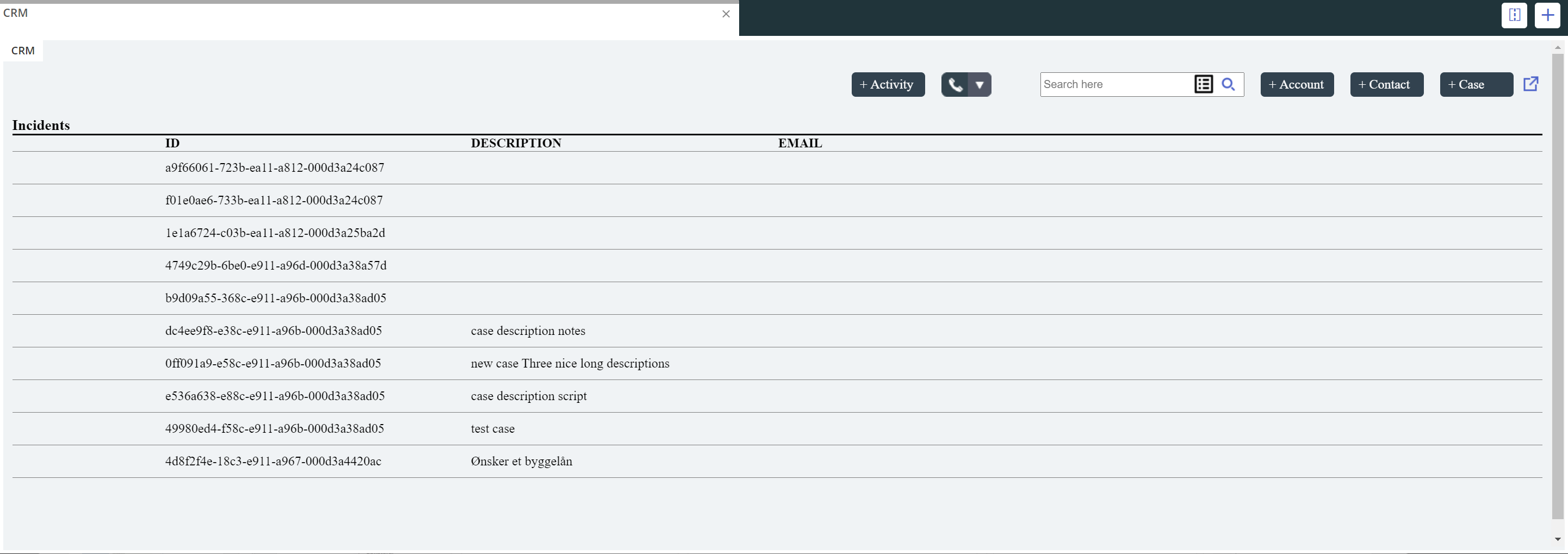 In addition to contacts and accounts, the widget can now also make a search for one other entity type. As an example, this can be the “incidents” entity or another entity in Dynamics.