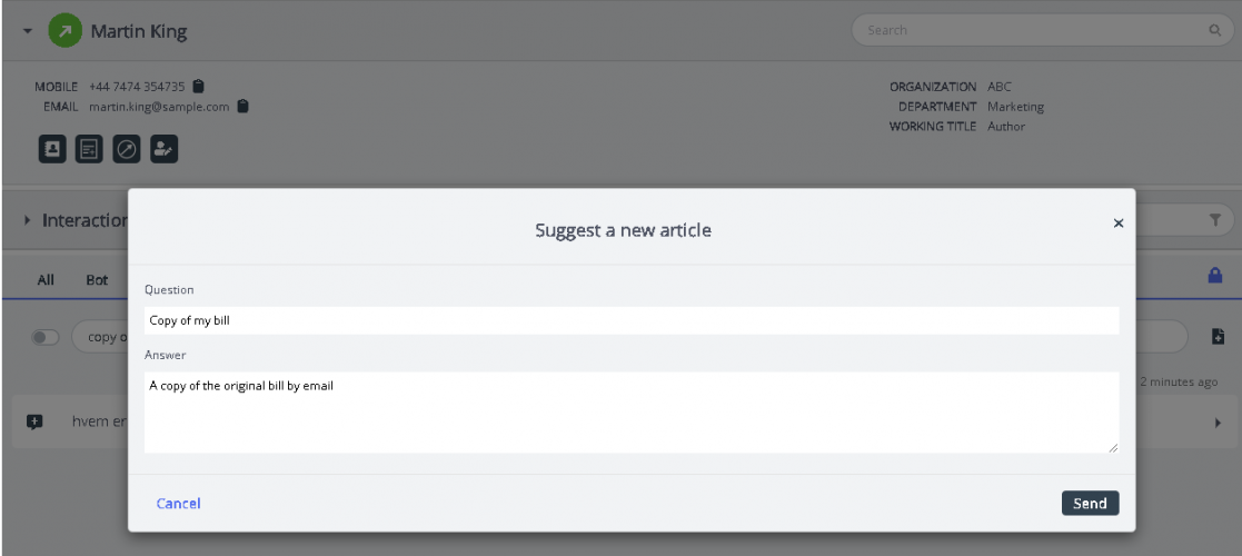 The suggestions are made available to administrator in the Knowledgebase Management System in Puzzel Admin for editing and publishing.