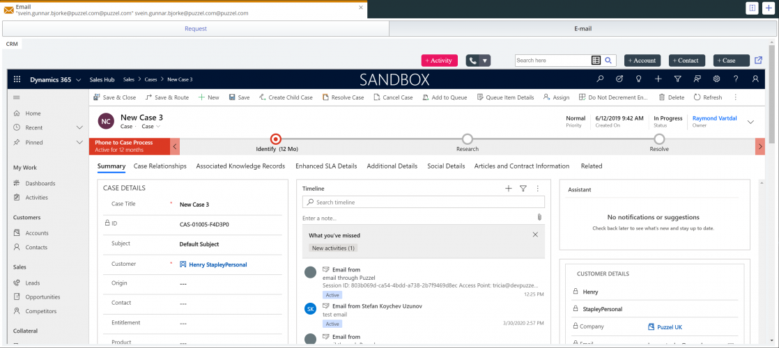 Support for the email channel have been added to the Dynamics widget. If a request has been tagged to target the Dynamics widget, then it will be opened inside the widget instead of being handled by the standard email functionality. Activity logging works as normal.