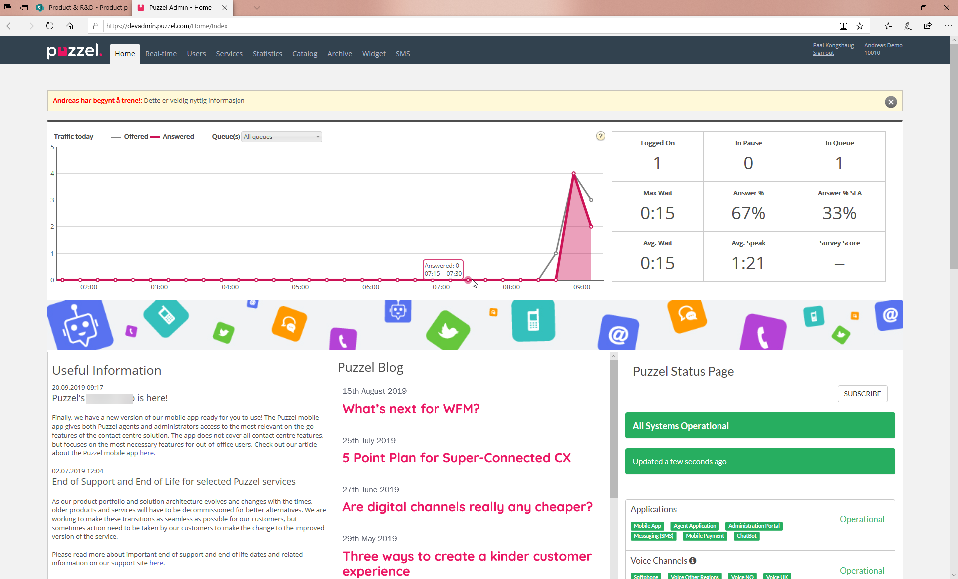 We have launched a new page under Services called Chat. If you want access to this page, please contact Puzzel and we will give you access.