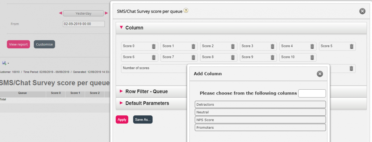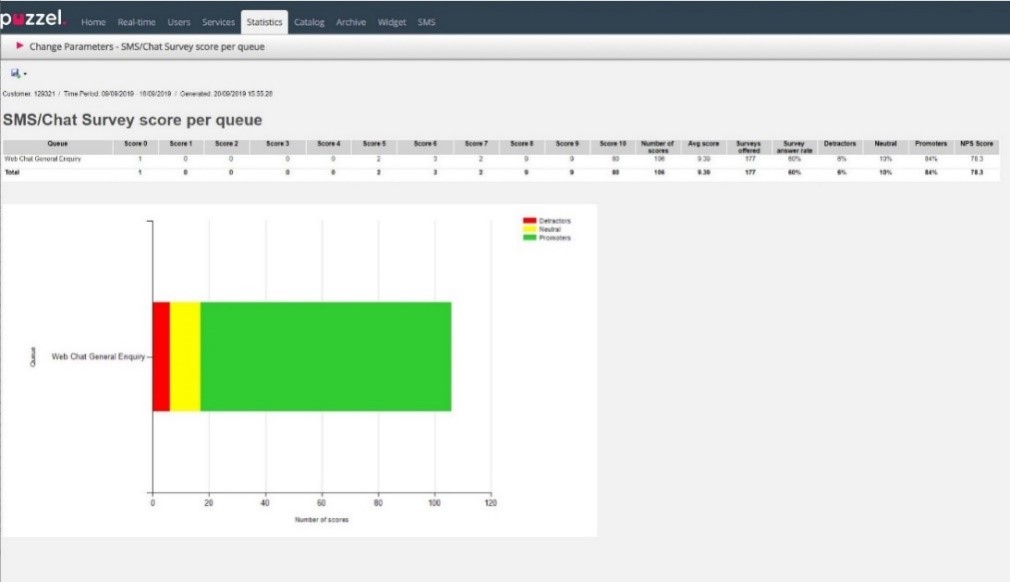 Survey score per queue gets NPS score and chart