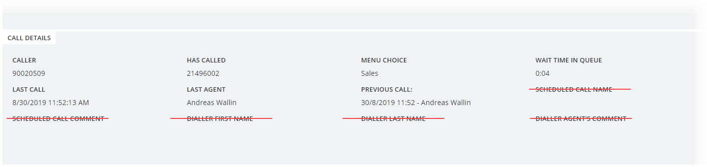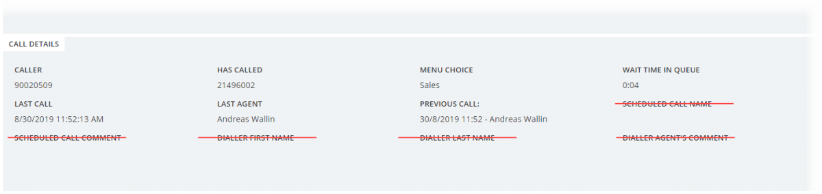 We are now enabling you to determine which screen popup information to display per queue. For some requests, information fields containing certain topics are empty or irrelevant, and should not be shown. E.g. for an incoming call, you do not need to see dialler-related information fields. More about this in the admin portal section.