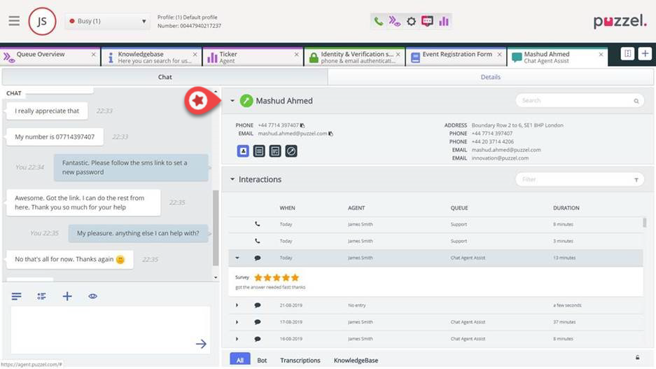 - Showing historical interactions including voice calls, web chats & emails
