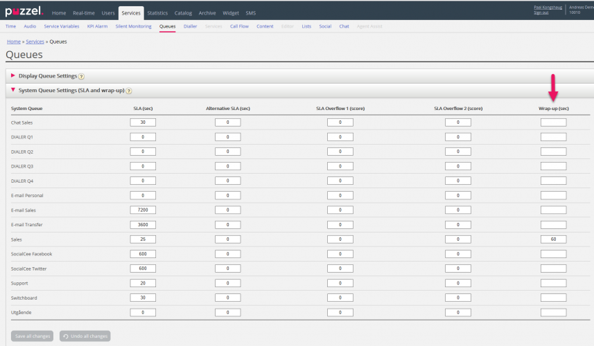 If you want to change what’s included in Archive or the storage time, Puzzel support will do the change and we will from now generate more detailed entries for the Change log. E.g. Storage time for General info changed from x days to y days.