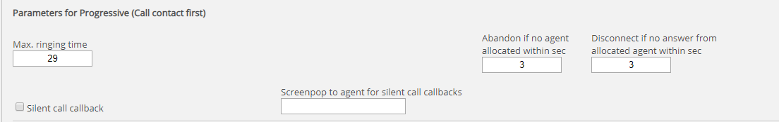 | Predictive (call contact first) | No | 0 | Progressive |