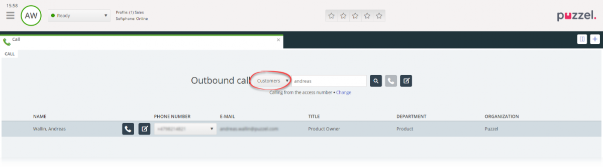 The contacts in this list are also available as search source Customers when the agent wants to do an outbound call.