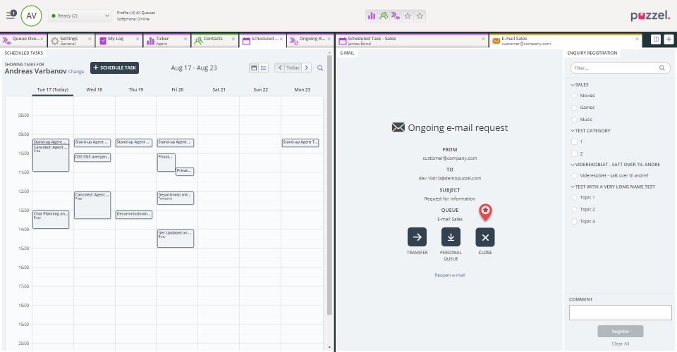 An additional close button has been introduced to make email and etask more intuitive and quicker when the Agent has completed a request and wants to close it. The button behaves the same way as if the agent closed the tab by clicking the "x"-button at the top right of the tab.