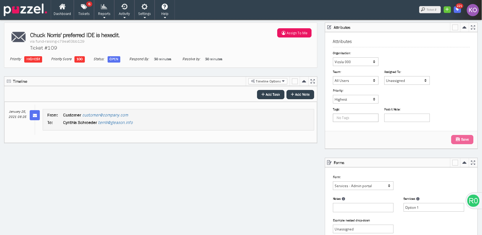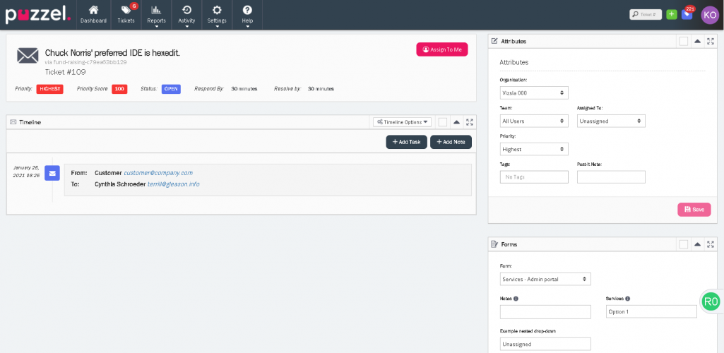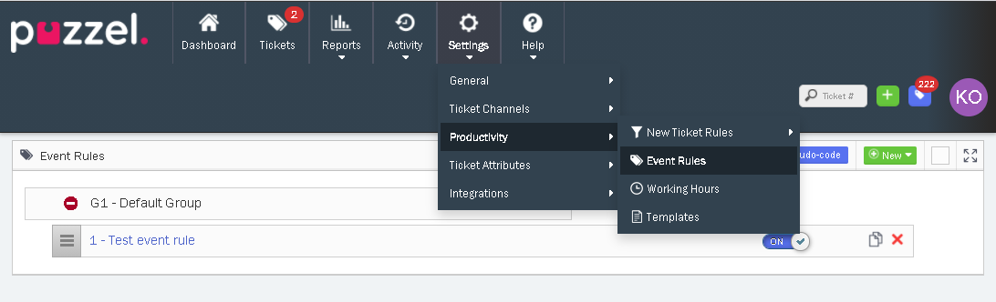 This release of Puzzel Ticketing also contains Event rules. These are automatic rules that are triggered when a specific event occur on a ticket. You can define the events to be team, user, priority, category and organisation change and set actions to be performed automatically once the criteria is met.