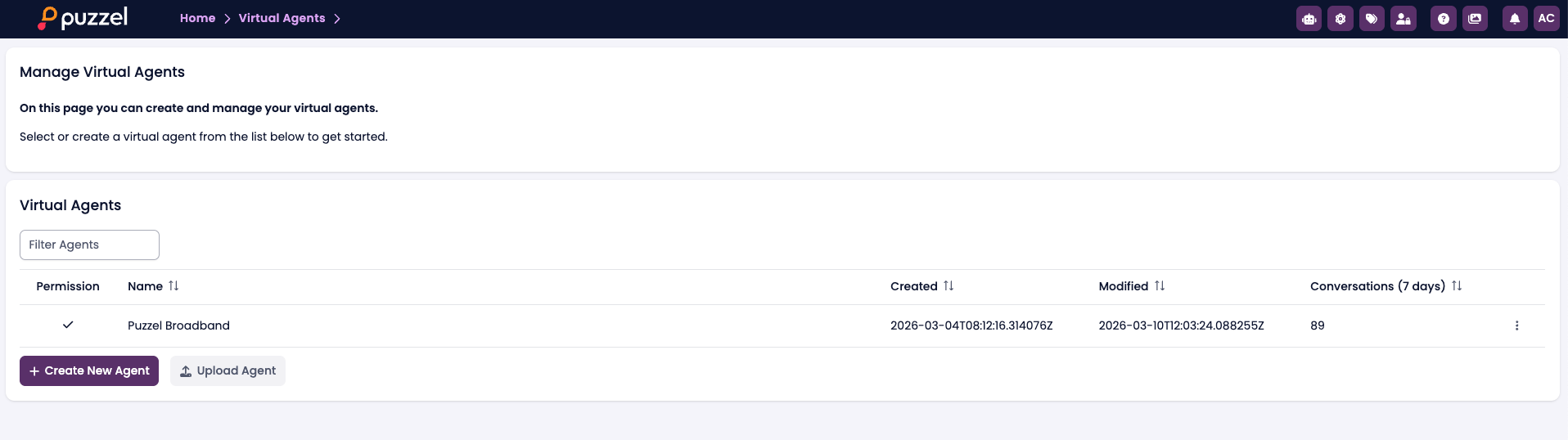 We have simplified the overview of Virtual Agents and improved the process of creating a new agent.