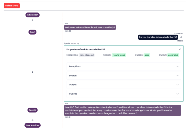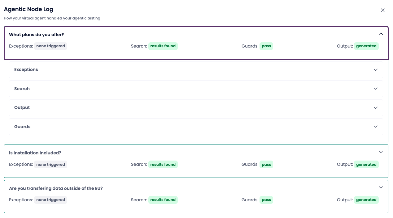 When reviewing a conversation in the Demo Panel or Conversation Logs page, agentic conversations are now displayed in a structured, readable format.