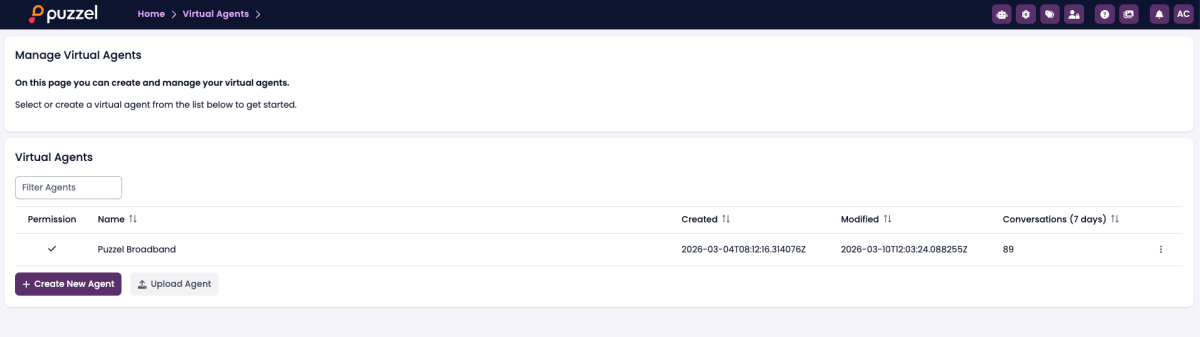 The agent overview has been streamlined to make it easier to manage your active agents, and the agent creation flow has been redesigned to reduce complexity when starting a new Virtual Agent.