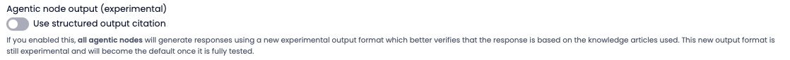 When enabled, the agent uses structured output for citations, which improves the consistency and accuracy of source references.