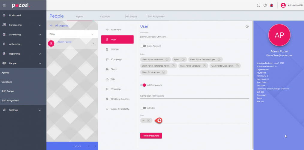 A new global filter has been added restricting resource planners to view only agents of the site they have access to.This will prevent them from viewing or editing agent schedules from other resource planners.