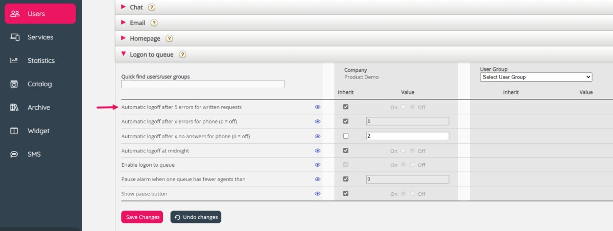 To facilitate auto-logoff of agents in these cases, we are now introducing a new property: “Automatic logoff after 5 errors for written requests”. You can turn it on for user groups working with email/chat/social media queues if you like. If you have bot agents, please don’t turn it on for the Bot user group.