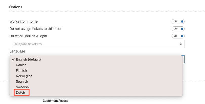 The Dutch language is now supported in Puzzel Case Management.  In order to activate the language for a user, navigate to Settings -> General -> Users -> Active.  Edit the user and select the preferred language as shown below.