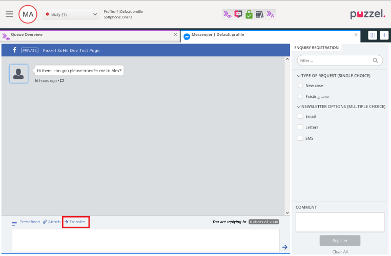 Until now, an agent has not been able to transfer a social media request to another agent or queue after he/she accepted it, but from now on, it is possible, if this option is turned on.