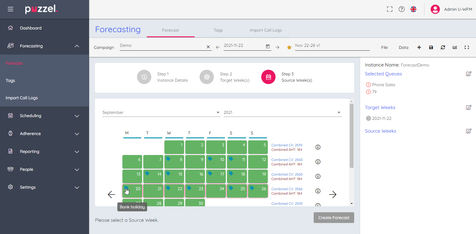 Planners can see tags that have been saved for a queue/day to indicate that this might not be suitable as source data when building a forecast.