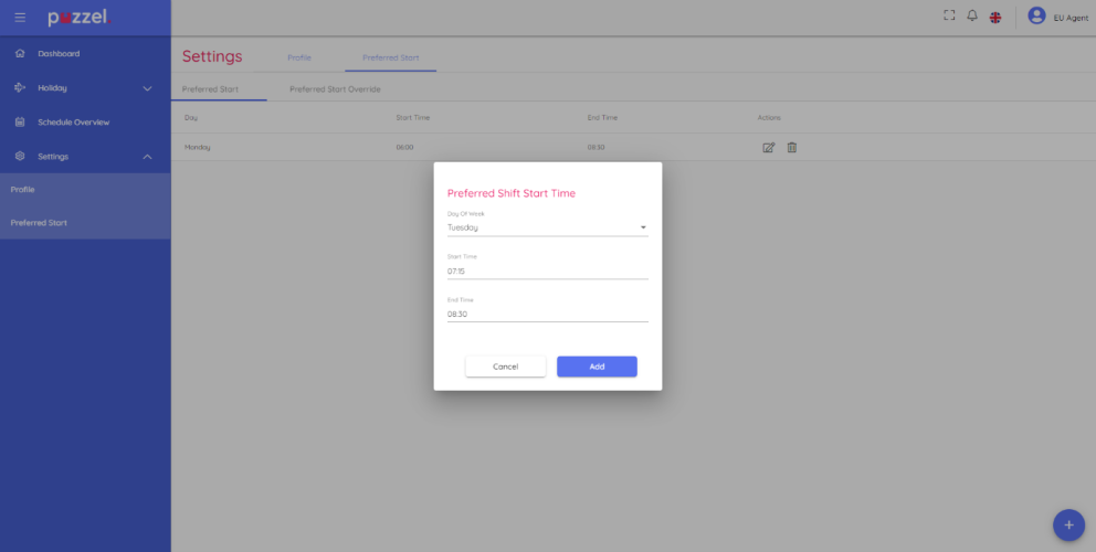 Planners can also enter the agent's start time preferences on their behalf in the planner portal as shown below.