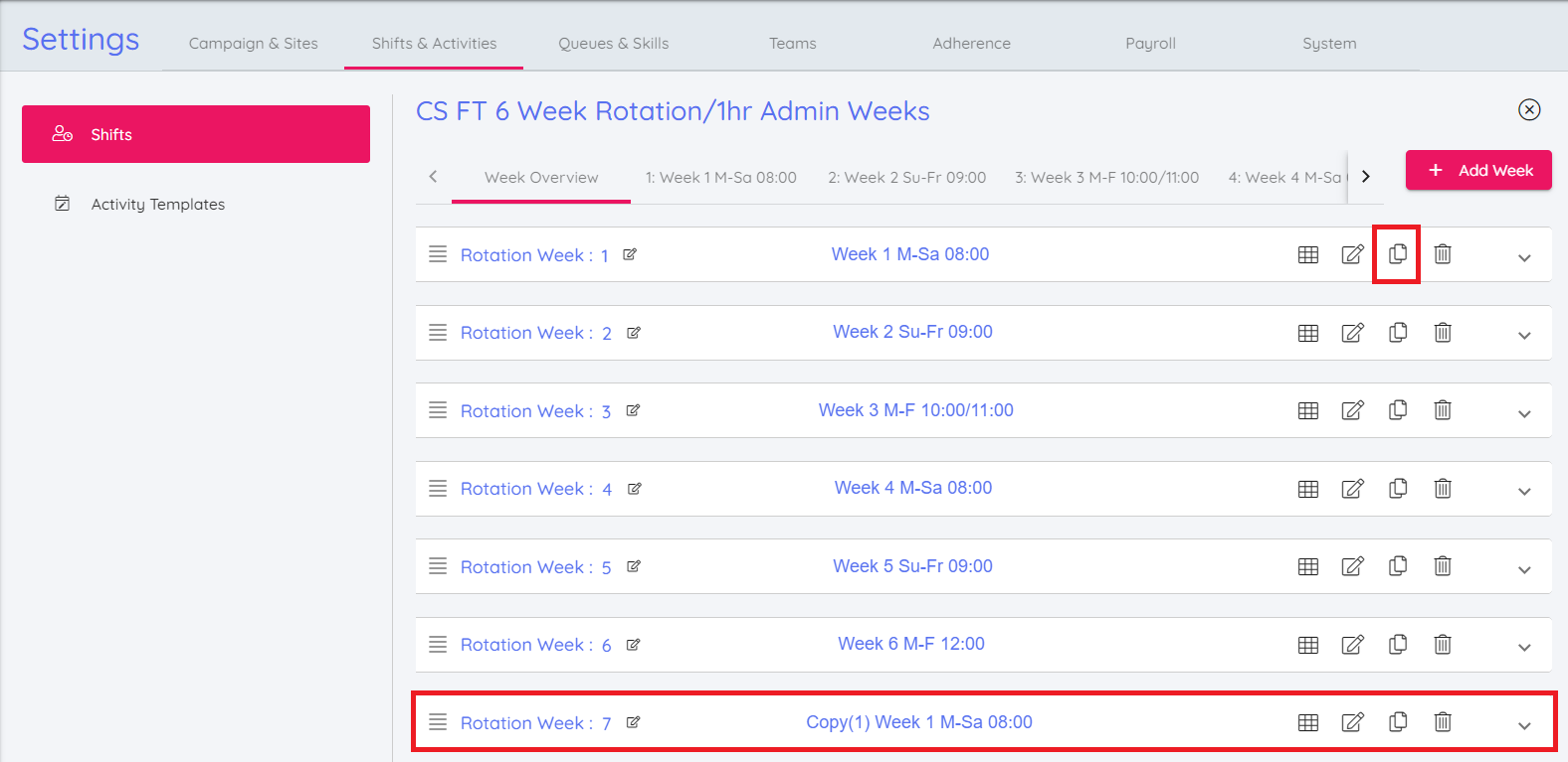 A button to copy a shift week into a new rotation week has been added to the shift template.
